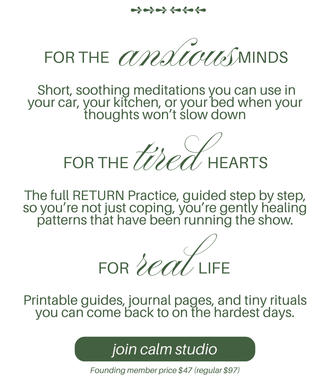 lifetime access to the calm studio, all current content, and future updates for founding members